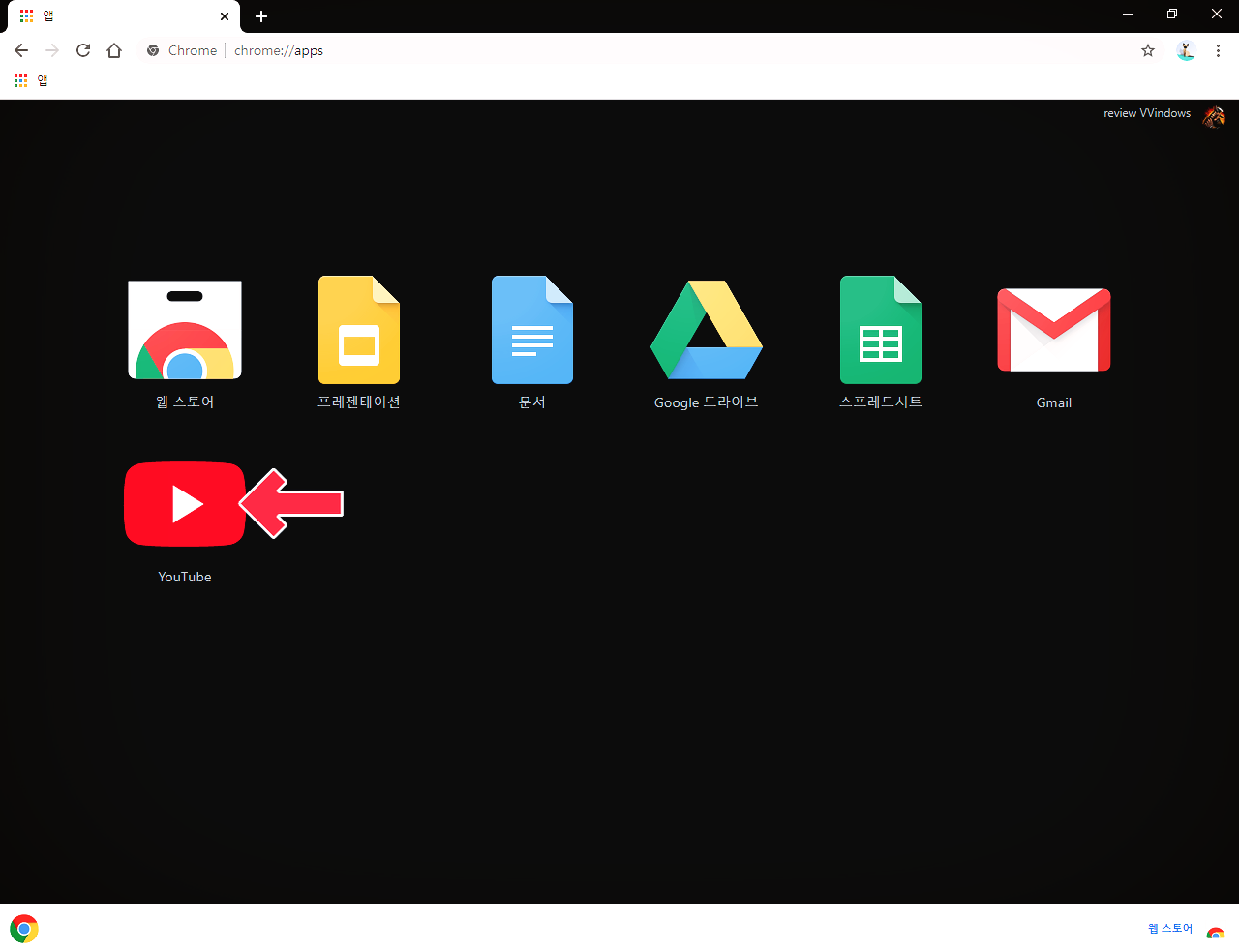 구글 크롬 브라우저를 실행합니다. <앱>을 눌러주세요.